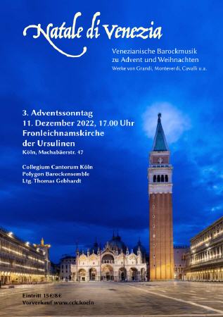Natürlich war die Weihachtzeit auch hier der Anlass, musikalisch alles zu zeigen, was man konnte. Angefangen von Giovanni Legrenzis besinnlichem Hymnus Te lucis ante terminum über Alessandro Grandis stimmungsvoller kleinen Verkündigungsszene mit in der Ferne aufgestellten himmlischen Stimmen bis hin zu Claudio Monteverdis prachtvollem siebenstimmigen Gloriaals krönendem Abschluss. Wir lassen die Hörerinnen und Hörer teilhaben an dem, was damals zum Ruhme des neugeborenen Kindleins gesungen wurde, aber auch zum Ruhme der Stadt und ihrer Liebe zur Musik.